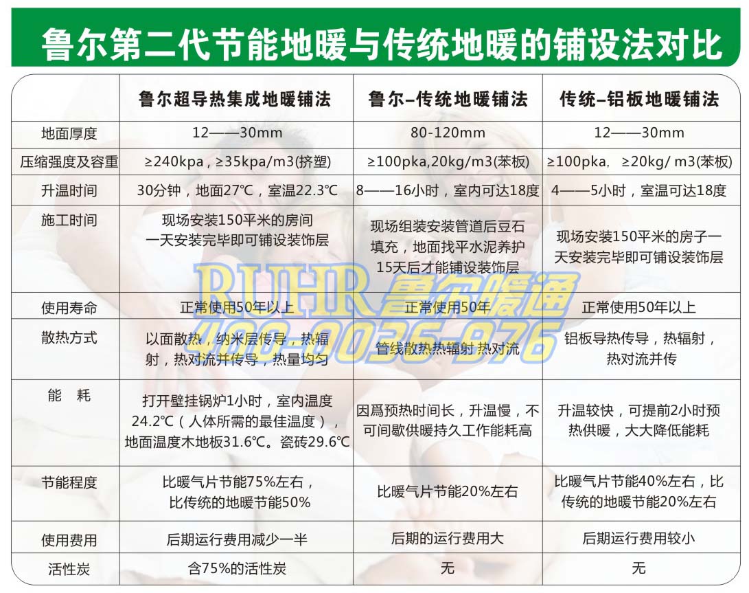 1、 节能,鲁尔超导热地暖模块采用德国鲁尔研发的航空超导纳米材料技术,该材料的导热速度比铝板快6倍。